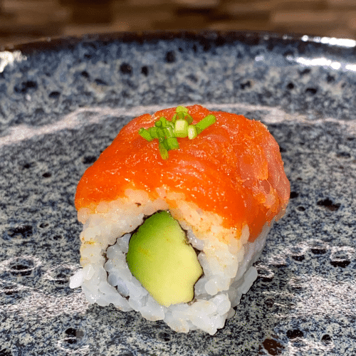 6 California zalm avocado, 6 California tonijn avocado en 6 California surimi.